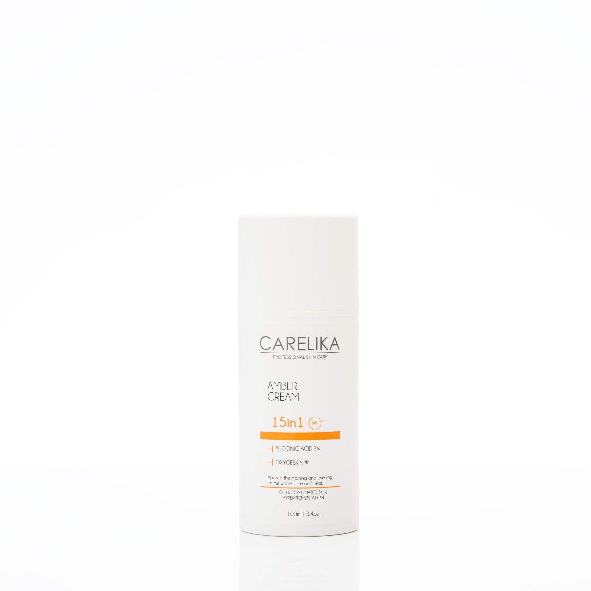 Krem CARELIKA Amber 15w1 to nawilżająca, nietłusta formuła, która przywraca nawilżenie matowej i odwodnionej skórze. Ten krem-żel stanowi idealną bazę pod makijaż, która wyrównuje koloryt i strukturę. Dzięki ultralekkiej konsystencji krem łatwo i równomiernie rozprowadza się na powierzchni skóry.