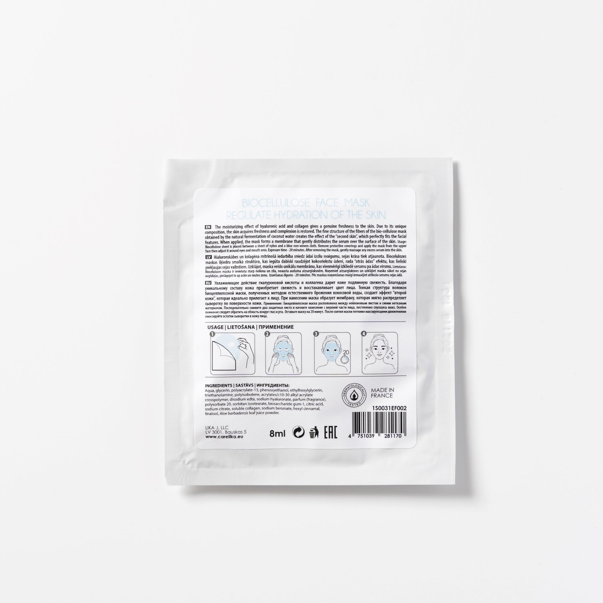 Maseczka do twarzy CARELIKA Biocellulose Face Mask z kolagenem rewitalizuje skórę, nadając jej miękkość i jędrność. Nasączona bogactwem kolagenu morskiego, który intensywnie restrukturyzuje i poprawia syntezę kolagenu, maska zwalcza oznaki starzenia się skóry twarzy.zmniejsza wiotczenie skóry, widocznie ją unosząc i poprawiając jej strukturę za pomocąsilne humektanty magnesujące wilgoć, takie jak hialuronian sodu i Fucogel®kompleks polisacharydowy.