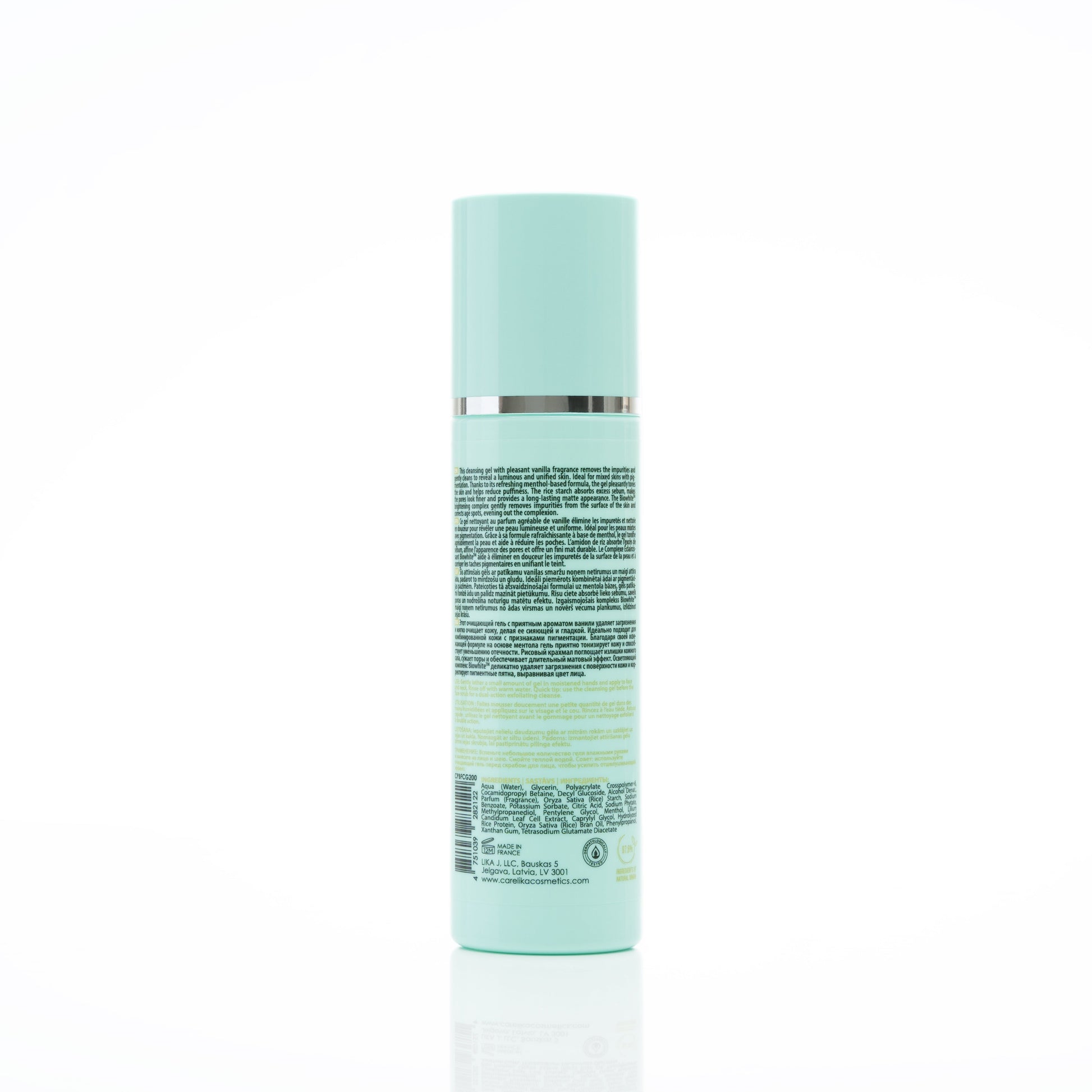 Zainspirowany tradycyjnymi właściwościami skrobi ryżowej, która zapewnia efekt oczyszczający, żel Carelika Face Cleansing Gel with Rice został opracowany jako żel oczyszczający. Żel jest odpowiedni do cery mieszanej. Wzbogacony orzeźwiającym mentolem, orzeźwia, usuwając zanieczyszczenia i matowość twarzy, zapewniając natychmiastowe odświeżenie. Skrobia ryżowa w magiczny sposób pochłania nadmiar sebum i pomaga utrzymać matowy wygląd przez długi czas. Natychmiast nadaje skórze promienny wygląd i jednolity koloryt. Ponadto odblokowuje pory, zwęża je i reguluje wydzielanie sebum.