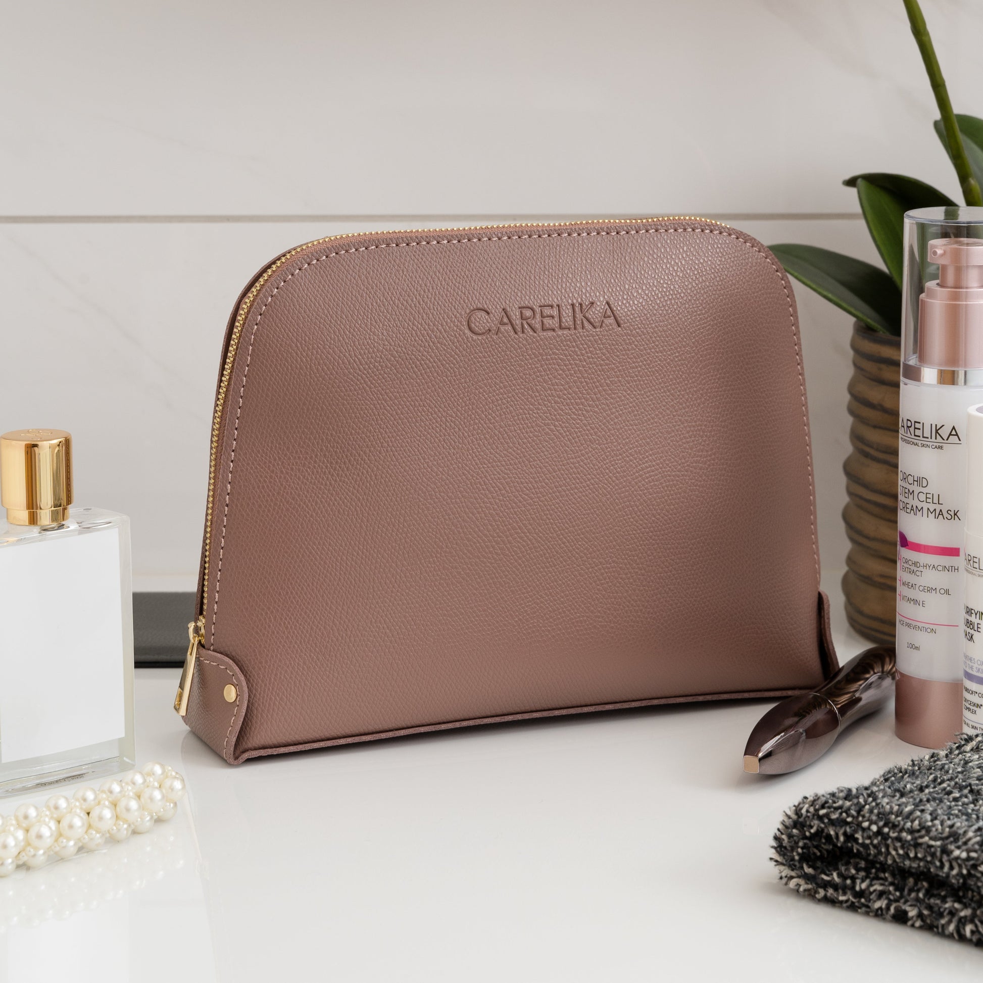 Intensywny brązowy kolor doda odrobinę elegancji Twojej codziennej pielęgnacji. Pojemna kieszeń zapewnia mnóstwo miejsca na schludne przechowywanie kosmetyków do makijażu, pielęgnacji skóry i przyborów kosmetycznych.