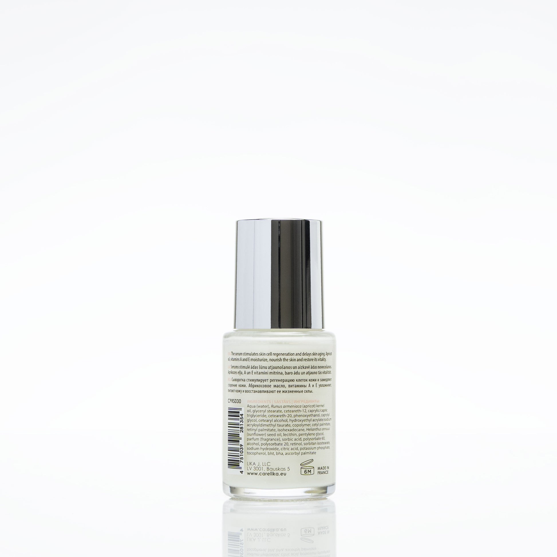 Serum CARELIKA z retinolem i olejkiem morelowym to doskonały produkt, który pomaga zachować młody wygląd. Dzięki zawartości retinolu, serum zwalcza drobne zmarszczki i przebarwienia, przywracając gładkość i jasność cery. Sprawia, że skóra twarzy staje się miękka i aksamitna, bez oznak starzenia. Serum poprawia strukturę skóry i nadaje jej młodzieńczy wygląd. Ponadto retinol skutecznie odnawia komórki, wspomaga zdrową odnowę komórkową i redukuje wszystkie oznaki starzenia. Olej morelowy działa wspólnie z retinolem, wygładzając i odżywiając skórę. Palmitynian retinylu dodatkowo wzmacnia działanie przeciwstarzeniowe.