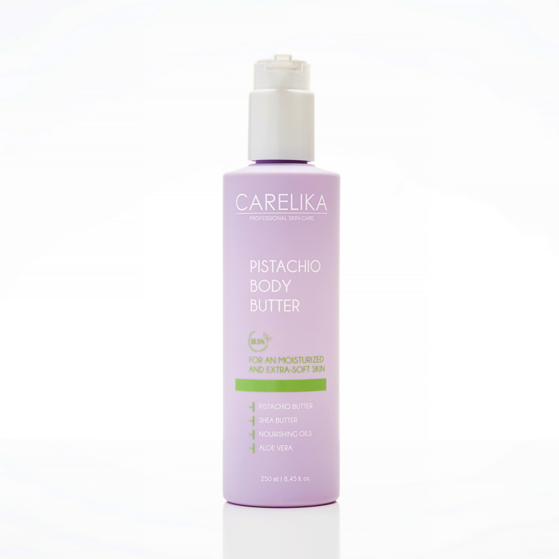 Połączenie kremu i masła tworzy rozpływającą się konsystencję do stosowania na całe ciało. Masło pistacjowe zawiera dużą część nienasyconych wolnych kwasów tłuszczowych zawartych w oleju, dzięki czemu zapewnia zauważalne korzyści dla skóry.