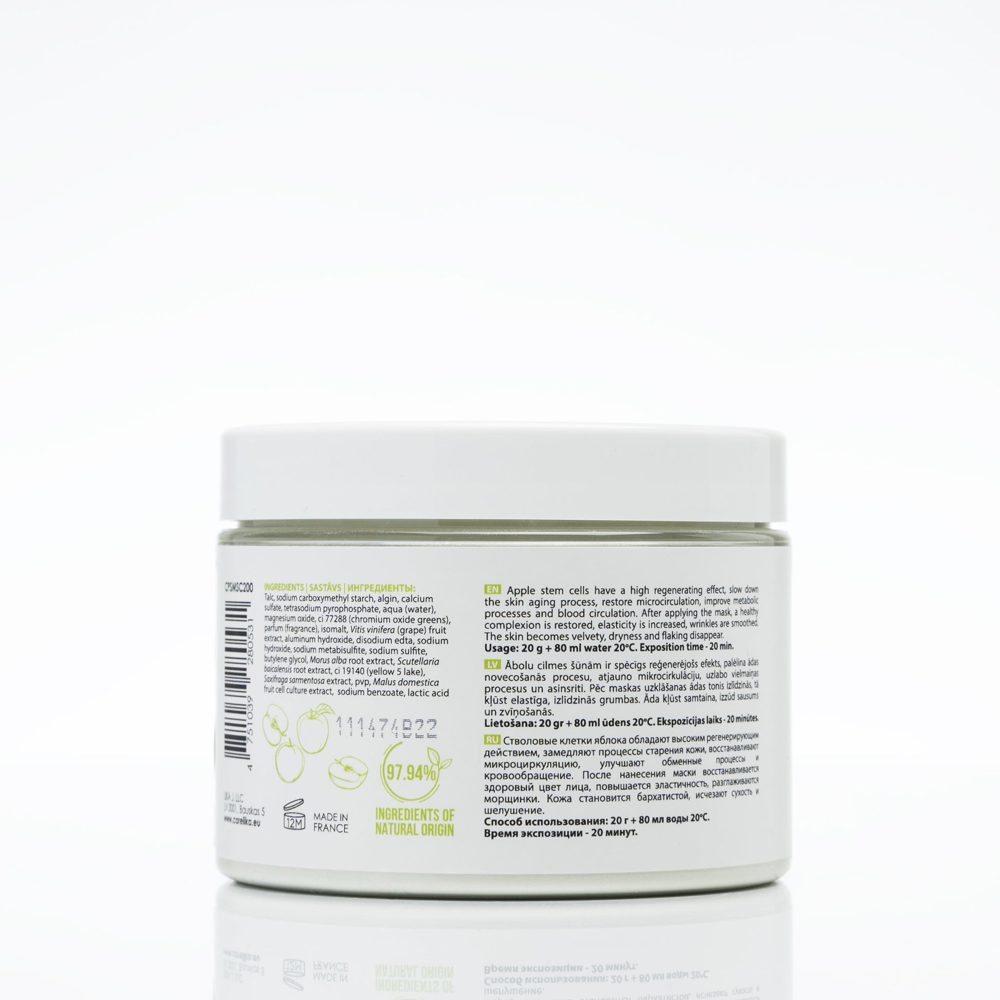 Wzbogacona ekstraktami z komórek macierzystych jabłoni, które zapewniają najlepsze właściwości przeciwstarzeniowe, spowalniając proces starzenia. Regenerują komórki, pobudzają mikrokrążenie krwi i poprawiają metabolizm. Alginian odżywia, nawilża i wygładza cerę. Maska redukuje zmarszczki, wygładzając je i przywracając skórze elastyczność.