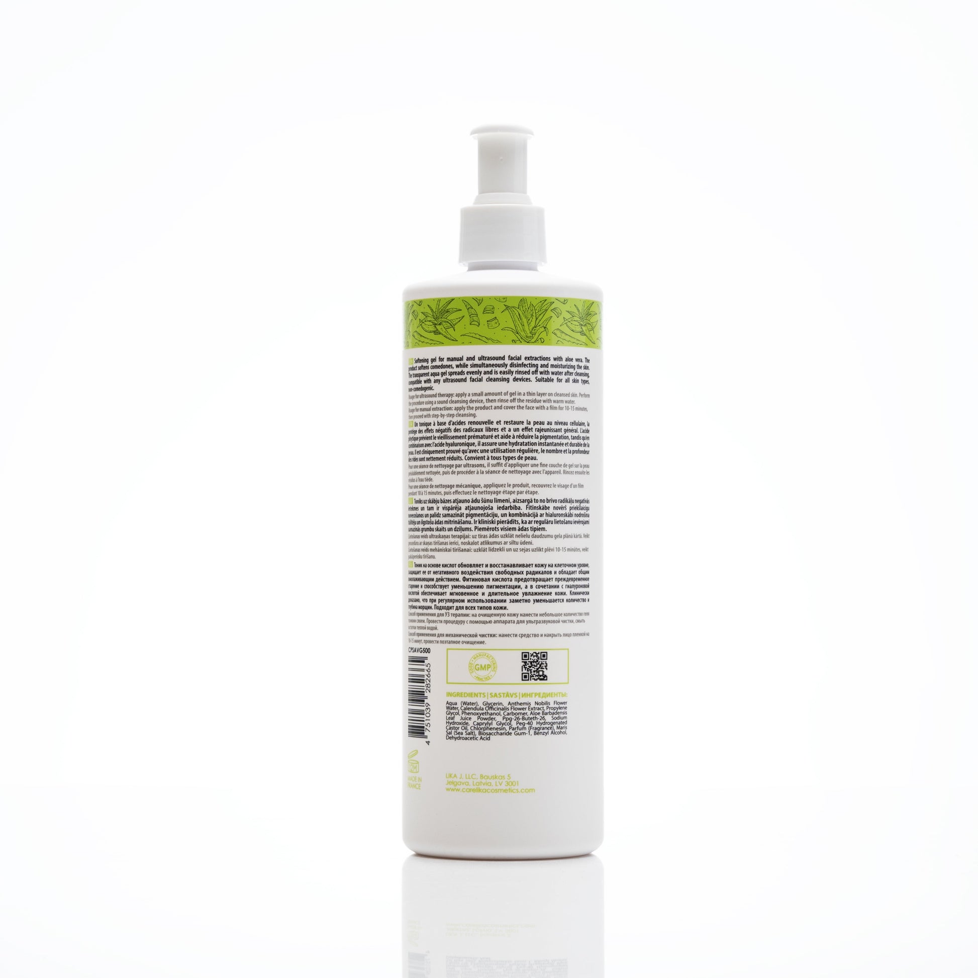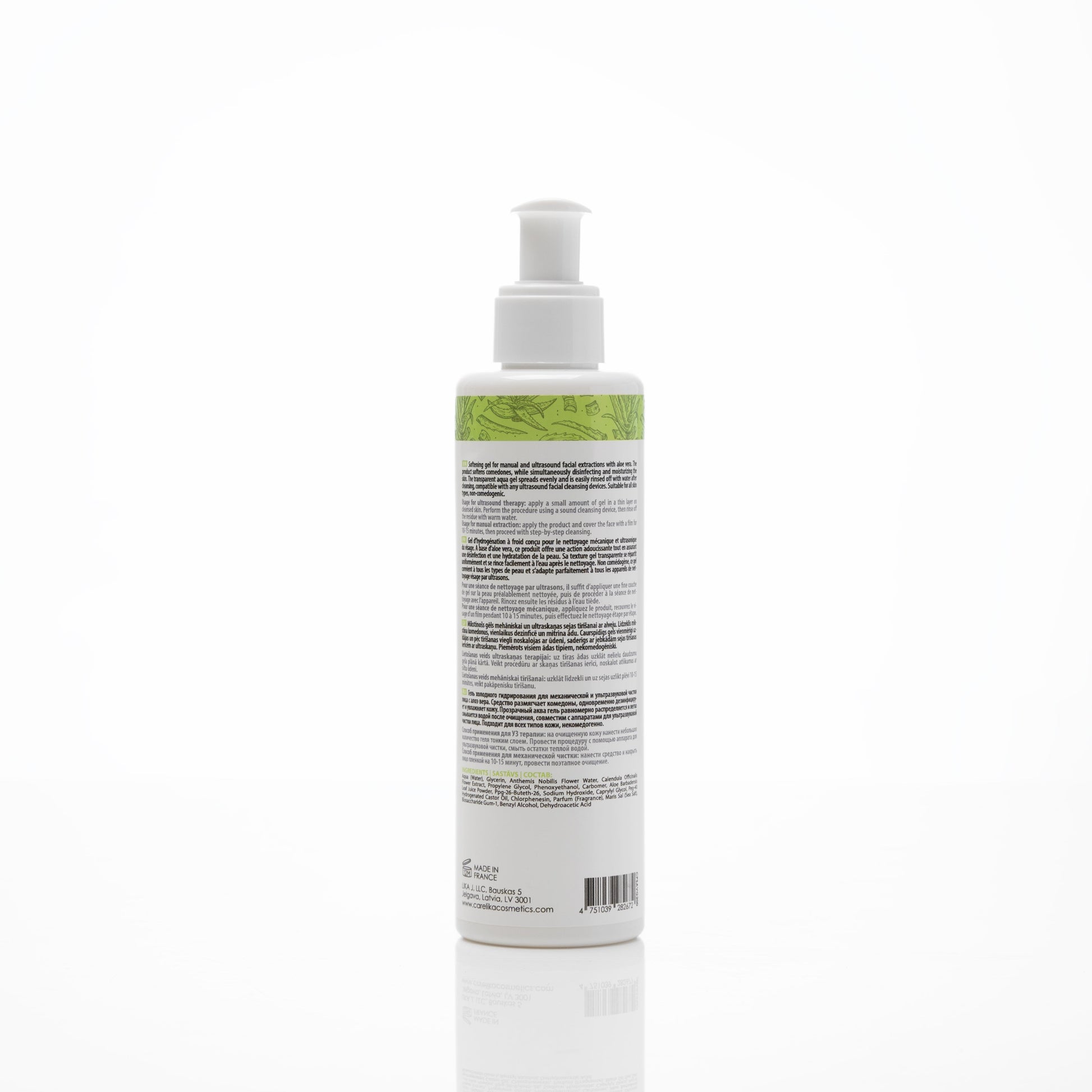 Żel oczyszczający otwiera pory i zmiękcza zaskórniki, przeprowadza zimne parowanie i przygotowuje skórę do zabiegu ultradźwiękami lub mechanicznego oczyszczania twarzy. Idealnie nadaje się do zimnego nawilżania (pod maską) przed oczyszczaniem twarzy. Zawiera żel aloesowy i rozluźniający kompleks jonowy, który zmiękcza zaskórniki, redukuje przetłuszczanie i błyszczenie się skóry, otwiera i oczyszcza pory oraz zmiękcza naskórek, ułatwiając późniejsze oczyszczanie i zapewniając wysoką jakość. Dodatkowo żel do zabiegów sprzętowych służy jako środek przewodzący do galwanicznej jonoforezy o wyjątkowych właściwościach nawilżających i regenerujących.